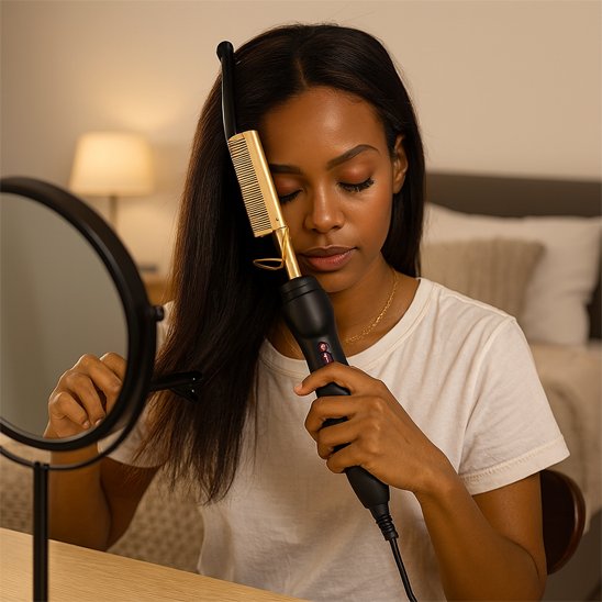 Thomas venait juste d'emménager dans son nouvel appartement parisien. Premier jour de travail dans une nouvelle entreprise, il voulait faire bonne impression. Ses cheveux mi-longs avaient tendance à friser avec l'humidité. Stressé, il alluma son peigne chauffant récemment acheté. En quelques passages fluides, ses cheveux étaient parfaitement domptés, avec un volume naturel qu'il n'avait jamais obtenu auparavant. Son entrée au bureau fut remarquée pour les bonnes raisons.